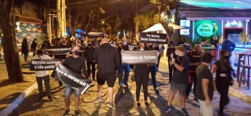 O comércio de Búzios está de luto. Empresários e empregados do setor, ocuparam o principal cartão-postal da cidade, a Rua das Pedras, no início da noite de ontem para um protesto silencioso.