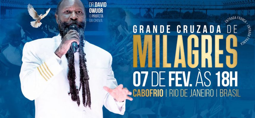 O polêmico pastor queniano David Owuor é a principal atração da Conferência Internacional Grande Cruzada de Milagres, programada para os dias 6 e 7 de fevereiro no terreno ao lado do Ginásio Vivaldo Barreto, na Jardim Esperança, com o apoio da prefeitura. Chamado por muitos de “profeta”, as falas do pregador viralizaram no ano passado nas redes sociais, quando ele afirmou que haverá um terremoto no Brasil e que grandes edifícios irão tombar uns sobre os outros caso não haja arrependimento. O religioso também criticou o que, segundo ele, seria uma exaltação às práticas homossexuais no país. David chegou a ter um de seus eventos cancelados após críticas à relação da igreja com a política no país, aos falsos profetas e aos “profetas do dinheiro”. O suposto profeta disse, ainda, que a igreja no Brasil precisa preparar a nação para a volta do Messias, não para outro governo.