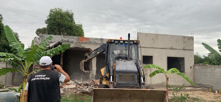 Na última operação liderada pelo Instituto Chico Mendes de Conservação da Biodiversidade (ICMBio), Polícia Federal e Ministério Público Federal, em colaboração com a 8ª Unidade de Polícia Ambiental (UPAM) e a prefeitura de Cabo Frio, cinco construções irregulares foram demolidas na Área de Proteção Ambiental da Bacia do Rio São João/Mico-Leão-Dourado, em Tamoios.
