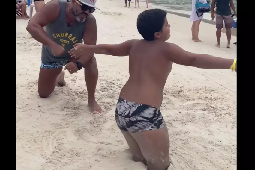 Vídeo de Menino Imitando ‘Bonecão do Posto’ em Arraial d
