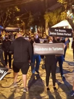 Comerciantes de Búzios vestem luto e promovem protesto na Rua das Ped