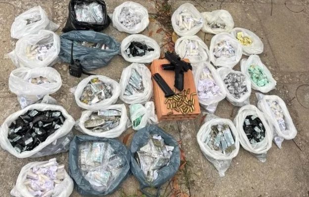 Durante buscas, os PMs encontraram um tonel enterrado com aproximadamente 1.350 pinos de cocaína de R$ 10 e 400 pinos de cocaína de R$ 25. Todo o material apreendido foi encaminhado para a delegacia de Búzios. Ninguém foi preso.