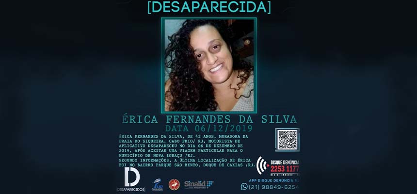 A polícia ainda não tem pistas do paradeiro da motorista de aplicativo Érica Fernandes da Silva, da Praia do Siqueira, em Cabo Frio.