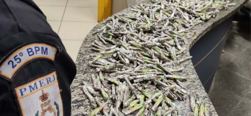 Policiais do 25º Batalhão apreendem 880 tabletes de maconha em Araruama