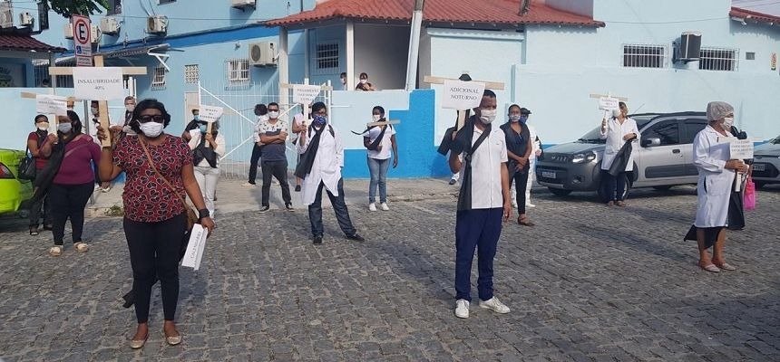 Servidores da Saúde protestam contra atraso nos salários e falta de EPIs