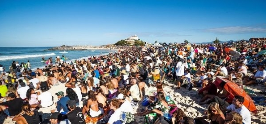 Os melhores surfistas do planeta passam, em seguida, por Portugal, Austrália e Indonésia antes de desembarcar em Itaúna, o “Maracanã do Surfe”, em Saquarema.